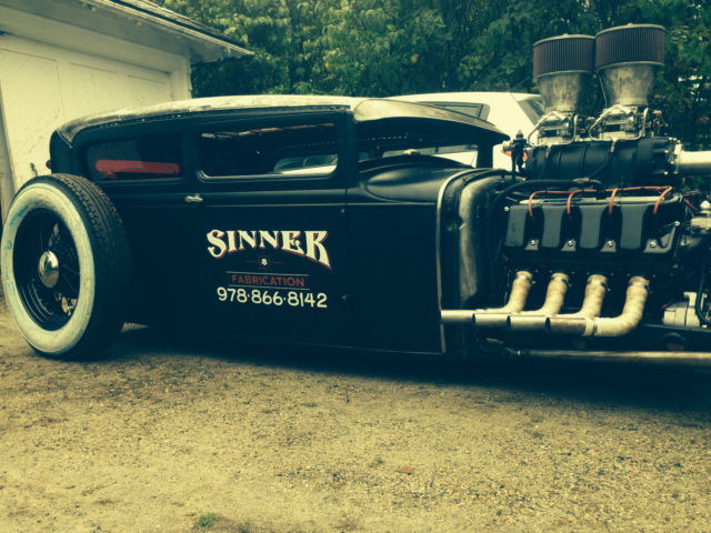 1930 Model A Ford Boss 502 Street-Rod First for you: Own one of the most radical and unique street rods you will ever see. Ask yourself; “How many original titled Model A’s with a Blown 810 HP Boss 502. all steel body. ALL FORD built! have you seen. I will consider selling motor separate from car ( Will be $30. 00 ) The motor makes 810hp/w only 7psi of blower boost on pumped gas; was designed to handle over 1000hp; will idle all day at 200 degree temperature; freshly built ( 9/18/2014 ) with less than 20 miles of run time. Only serious buyers can give me a call at 978-866-8142 ask for Dan if you’re interested in talking. Thanks; good luck bidding Read on: it’s worth it Body: - 1930 Model A Tudor two door with 76. 00K original miles with original title - All steel body absolutely no body filler or replacement panels anywhere - Chopped 7”/ Channeled 4” / welded and gusted solid - Re-stock original style wood roof kit - Frenched-In original 59 Cadillac taillight/directional - 1965 School bus stop light - Red transparent Lexan rear window panels Frame: - 4” x 2” x 1/8” square tube frame rails; one piece from front to back - 4” x 4” x 1/8” square tube structural I-Beam style center frame rail - Entire frame / body is welded to an 1/8” steel skid plate - Schedule 80 steam pipe for front frame gussets - Center frame rail is the air tank for air ride supply system - Gas tank is 1/8” steel plate with KBS ceramic inner coating welded to rear axle hoop supports - Autometer gas tank sending unit with top filler cap for easy excess - All plumbing and wiring run through the frame for clean install - 1932 front cross-member - Custom mono-leaf front bracket Front and Rear assemblies: - Front assembly is a 4” drop DOM tube with SM300 Pro Shocks - Split wishbone with forged yokes and SteelBell steering arms assemblies - 1937-48 Ford 11 ¾” front discs with Ford 5 on 5 ½ bolt pattern - 1937-48 Ford Bendix 12 ¾” rear drums with Ford 5 on 5 ½ bolt pattern - Stainless Steel brake lines - Front tires: Rally America B52-16” steel spoke with Firestone 3” 650-16 Whitewall - Rear tires: Rally America B52-20” steel spoke with Firestone 43/4” 700-20 Whitewall Engine: - PK Machine built Ford Boss 502 - DYNO TESTED at 810hp with 721/ft. # on 92 octane - 9:5. 1 static compression with only 7 PSI blower boost - Jon Kaase Engineering Boss 9 heads complete with WW Engineering rocker assemblies - New Supercharger USA 6061-T6 671 Blower Kit w/ Boss 429 cast aluminum manifold - Hard anodized blower case w/ stage-3 Teflon strip double row bearing helical rotors - ATI 4-bolt main line - Eagle 4340 forged steel crank - ATI Super Harmonic Damper with custom pulley mounting assembly - H-Beam connecting rods - Diamond Racing Product pistons - Kaase BBF oil pump - Milodon Marine style 8 qt. oil pan - Twin A. E. D Competition Fuel Systems custom carbs - Magna 500 MP-4450 fuel pump with in-line bypass and filter up to 36psi at 2000hp - Meziere 300 series remote 55 gal. water pump - K&N 9” velocity stacks - All ARP hardware - All Aeroquip line and AN fittings for fuel / cooling systems - All aluminum custom Griffin radiator with a shrouded 1350 CFM electric fan Drive line: - New TCI Super Street-Fighter C6 automatic 1050hp transmission - Remote electric Flex-a-lite 10. 5” transmission oil cooler - ATI 3500 stall converter - ATI true flex plate - Lokar nostalgia shifter assembly - Ford 9” big bearing new style with 4-Link air ride system - Center Section: Aluminum Yukon thru bolt /w a 10 bolt 3. 250” Daytona pinion bearing support - Gears: New 2. 75 ring and pinion - Carriers: Billet trac-loc 28 spline posi - Yoke: Billet Steel with 1314 hoop style clamps - Mitchell custom drive shaft Electrical: - MSD Ignition 6425 digital 6AL controller - MSD Blaster 2 Ignition coil - POWERMASTER Performance 500 amp starter - Mallory low profile distributor - Kaase spark plug wires - Painless 20 circuit wiring harness with custom wiring throughout car - Phoenix Gold 60 amp main fuse blocks - Optima RedTop 800 cold cranking amp battery - Ballistic custom battery holder - Stock 1929 Ford headlights converted to HED lamps - All gauges are Autometer Ultra-Lite analog - Original 1929 headlights with HED bulb conversion - QuickCAR 7-switch ignition control panel - Advair 200 PSI air ride system with Firestone 2500# rear air bags Extra stuff: - WWII bomber seat belts - Custom steel bomber seats with copper riveted side panels and Buffalo hide seats - 1965 Mustang rosewood steering wheel with quick disconnect - WWII soldier ammunition belt for storage - Interior is custom barn wood with cooper highlights for the Moonshine look - Vintage brass Pyrene fire extinguisher for radiator overflow tank - Bandit custom Pin striping - Over 1000 labor hours in build time
