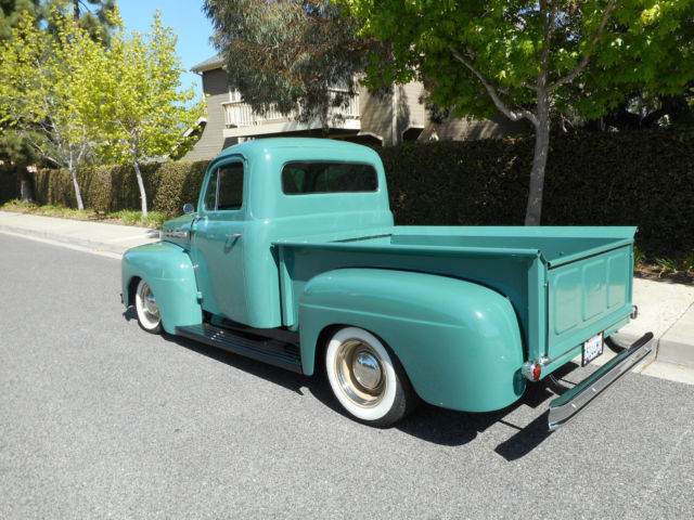 You are bidding on a 1951 Ford F-1 Truck. nbsp; Truck is a resto-rod. has new 350 crate motor. turbo 350 transmission. nbsp; Stock frame with chassis engineering mustang ll suspension. manuel steering. power disc brakes up front. rear suspension is chassis engineering spring kit with 10 bolt chevy rear end out of a nova. nbsp; update gauges. custom seat. nbsp;Wheels are solids with 48 ford hub cap and trim rings. nbsp;and bf Goodrich Silvertown white walls. Needs minor touches. wiper hooked. ebrake. horn. Buyer pays $500 deposit end of auction with pay pal. Buyer responsible for pick up and delivery. question email linvatec1@yahoo. com