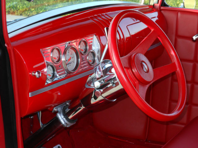Fresh BuildAll Steel. Very nice BodyNEW PARTS Frame is from Pete & Jakes. Been Poweder Coated. s well as the Drilled 4" Drop I Beam front Axle. nbsp; Split Wishbones4 Wheel Disc BrakesAluminum Radiator32 Steel Radiator shell and Stainless Steel InsertCustom Built Drive Shaft by Fast ShaftsFully Polished Stainless Steel Headers. ipes and Mufflers342 Rear Gears Posi 10 BoltBillet Dash Insert with Dalphon GaugesCustom Aliminum Gas Tank From Boyds of FloridaChrome Tilt Column - Column ShiftKing Bee Head Lights37 Ford Tail lightsAluminum Windsheild FrameCustom Red Interior by Phils of Barnum Ia. Tinted Safty GlassCoil Overs on RearDoor LatchesC-4 TransmissionFreshly Rebuilt 289 Hi Po with 600 miles on it. Engine number C5AE 6015E Large Main Caps Little over 340 HPFactory 3 Duece Set Up. nbsp; Came only on Shelby and GT 350'sCarbs are New Holleys ( Factory Correct ) for the 1966 Ford Intake. From Carls Ford Parts. With Finned BreathersALL ABOVE ARE NEW OR REBUILTThe dash is out of a 46 P/UCustom Weld Wheels and New TiresThanks for Looking. This Car Runs. Drives. xcelland around town or on the highwayDon't think you'll find a nicer driveing Model AI may be able to deliver ? 515-238-4228 for more lnfo