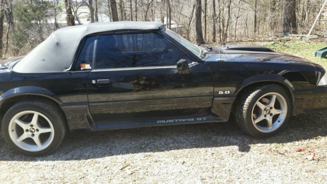 1988 mustang gt 5. 0 5 speed convertible clear indiana title stock motor except little cam 373 gears 99xxx miles cobra rims lights under car runs good inside good ornigal car not new but nice garage kept never abused my number is 812-596-4171 any questions good luck I will not ship u would have come n get just depends where u r at I may b able meet half way call first good luck no shipping car does not have ac has the compressor but no lines heat works good u can get in this car n drive it cross country tires has about 1500 miles on them so fairly new. foxbodys starting to get hard to find this is one of the nicest one u will find don't get drove n winter or rain. been very well taken care of iam 2nd owner car has been n my family for 13 yrs before that a guy up around Michigan had it he harley ever drove it. good luck there is a reserve but who gets it will not b dissponted there is a 500 dollar deposit due if get wining bid ur welcome to come drive the car before taking it home drive it half day if like . also the car has not been abused o just work 6 days week no time to enjoy it. like I said car not perfect far from it but a nice car n very depanable car