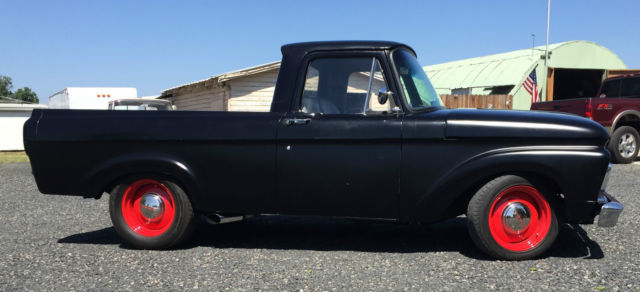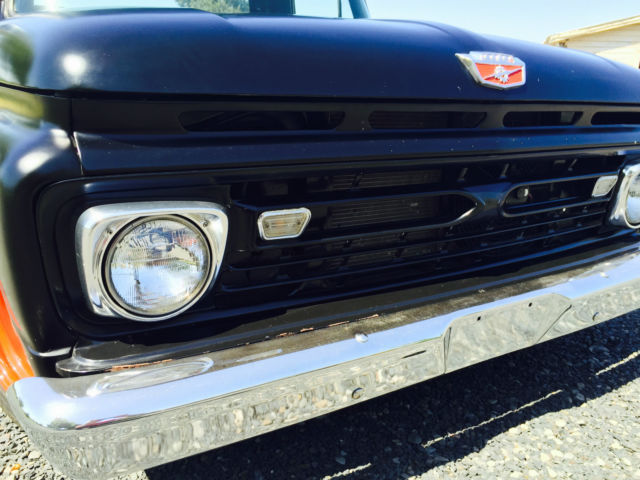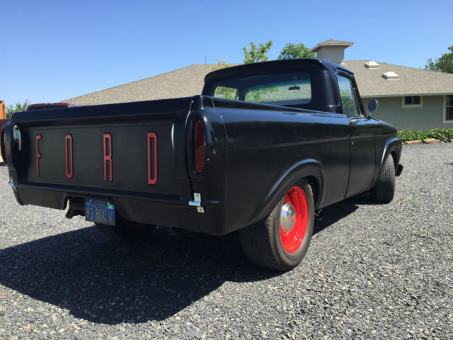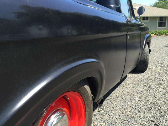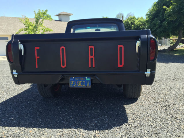 Condition: The overall body is straight but has the common minor dings from 70 years of use that i did not fill for it brought character to the truck. There is no rust in the cab or undercarriage. If there is its simply topical. There is an area on the tail gate that the body filler is chipping that will need repair in the future. The bed was spayed with a liner. There are common dents in the bed. a hole in the size of a dime in on the driver side between two ribs from a puncture. The body was sand blasted then primed. once primed it was shot with two coats of hot rod black. The engine was rebuilt a couple hundred miles ago. It has a mild RV cam with all new rings and seals. The block was honed and all new freeze plugs put in. The heads were gone through to make sure hardened seats were installed with double springs for the valves. The pistons are flat tops with standard rods. The crank was turned to the new rings. The edelbrock intake and 750 carb allow for some good fuel to air ratio. however these 429's weren't known for their fuel economy. Standard stock manifolds with duel exhaust with two chambers that dump in-front of the axle. The transmission has not been rebuilt but when put in the truck it was in good condtion. The driver side shifting port seal was just changed and it has all new fluids with a chrome oil pan. Smooth shifting with no over drive. there are stock gears in the rear end. The frame came from a 1980 chevy sliverado. The bolt pattern obviously is chevy 5 on 5. 5. The rear 12 bolt is in good shape with no leaks and new fluids. The brakes have been rebuilt all the way around. Every master cylinder. caliper. brake line (soft. hard) distribution valve have been replaced. The front is standard half ton disk brakes with big block springs with 2" lowering spindles. New bearings and seals in front. It was recently aligned. It has power steering. The wheels are 17" steelies vintage. the fronts are 17x8 and rears are 17x9. The hub caps are early model ford. The interior is in good shape. The seat is a leather cadillac rear bench that was mounted to the original ford frame. The carpet is gray to match the seat. there is no head liner. The gage cluster works and all signals work. Steering column tilts with a GT steering wheel mounted to it. All the weather stripping was replaced including a new front windshield. The heater works well with no leaks. The windshield wipers were never mounted because the truck was never planed to drive in the rain but they are available. It has an A/C pump mounted but never completed. Items lacking: Gas gage hooked up but doesn't work properly Head lamp in cab Speedo cable is not hooked up Head linerMost of the odds and ends receipts are in a folder that identifies item purchased for truck. On May-05-15 at 12:16:47 PDT. seller added the following information:The fallowing is a video posted to Youtube of the truck running. https://youtu. be/auK3WAQjHPI