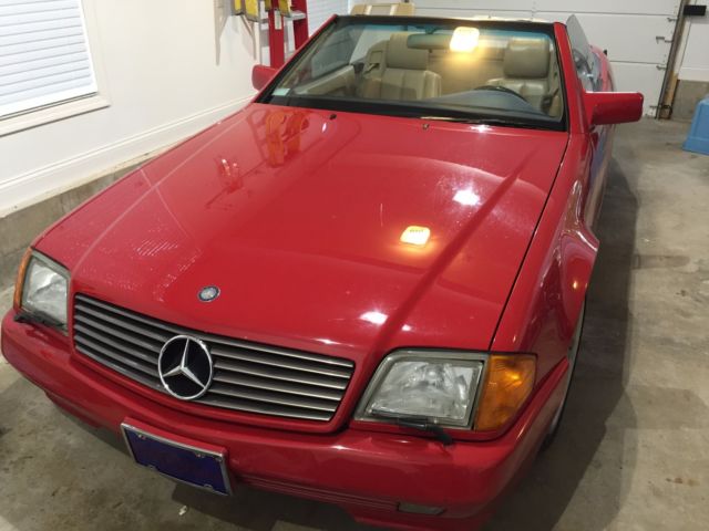 1991 RED MERCEDES BENZ SL 500 V-8- 90,000 miles total, only 55,000 miles on newly installed motor- convertible, comes with hard top- owned 15 years, garage kept