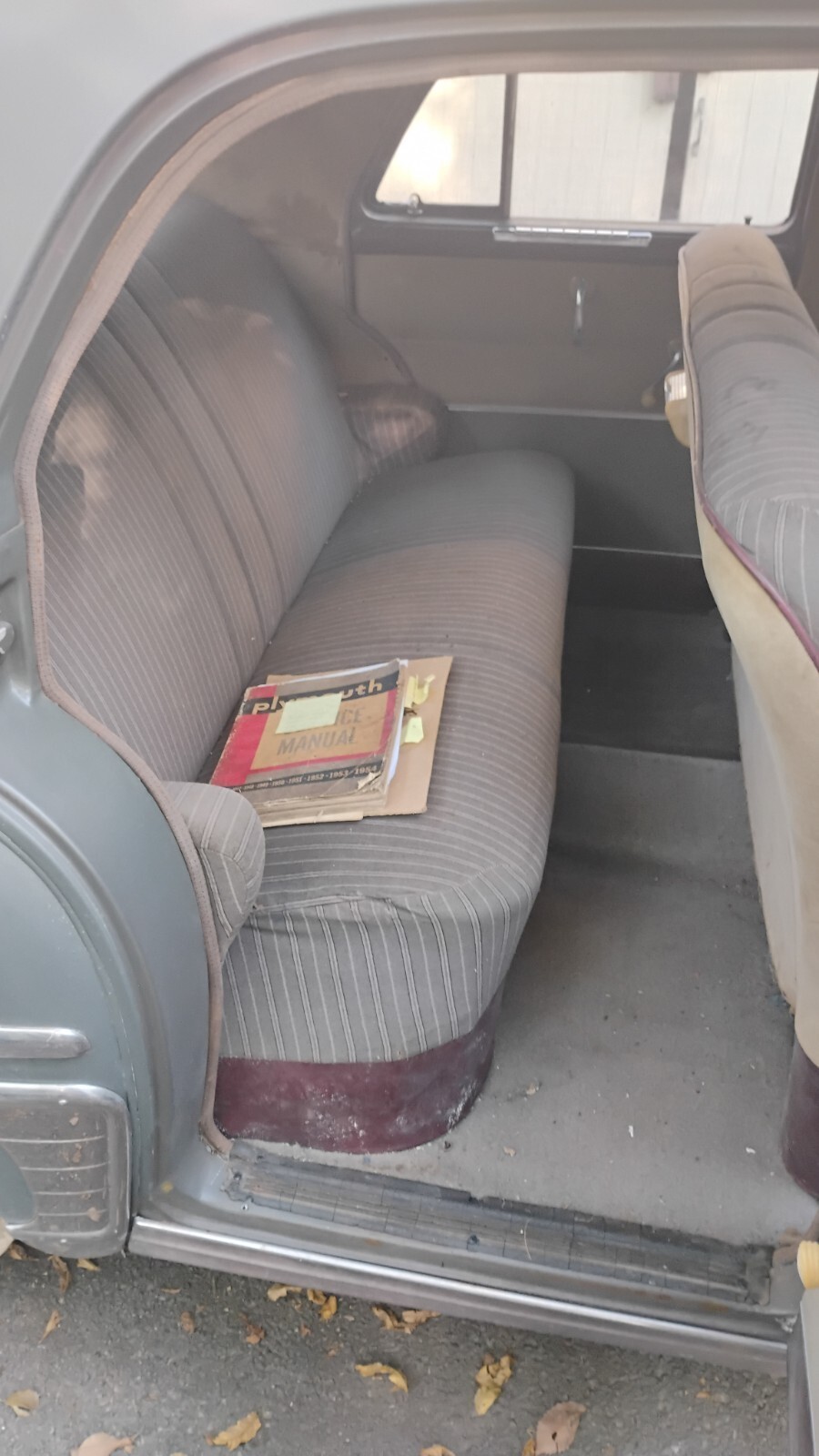 1949 Plymouth Special Deluxe, 61000miles, starts and runs, original upholstery, brakes work. Engine needs work. Lights and brake light works. A few spare parts